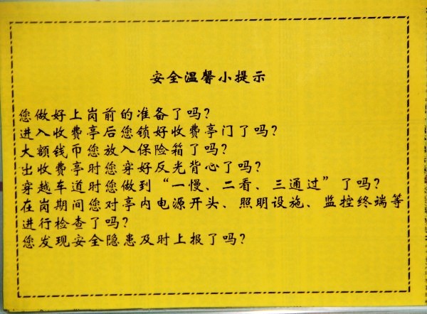 在全國第十三個“安全生產(chǎn)月”期間,宣化東收費站采取一系列有效措施,確保“安全生產(chǎn)月”活動取得良好效果。