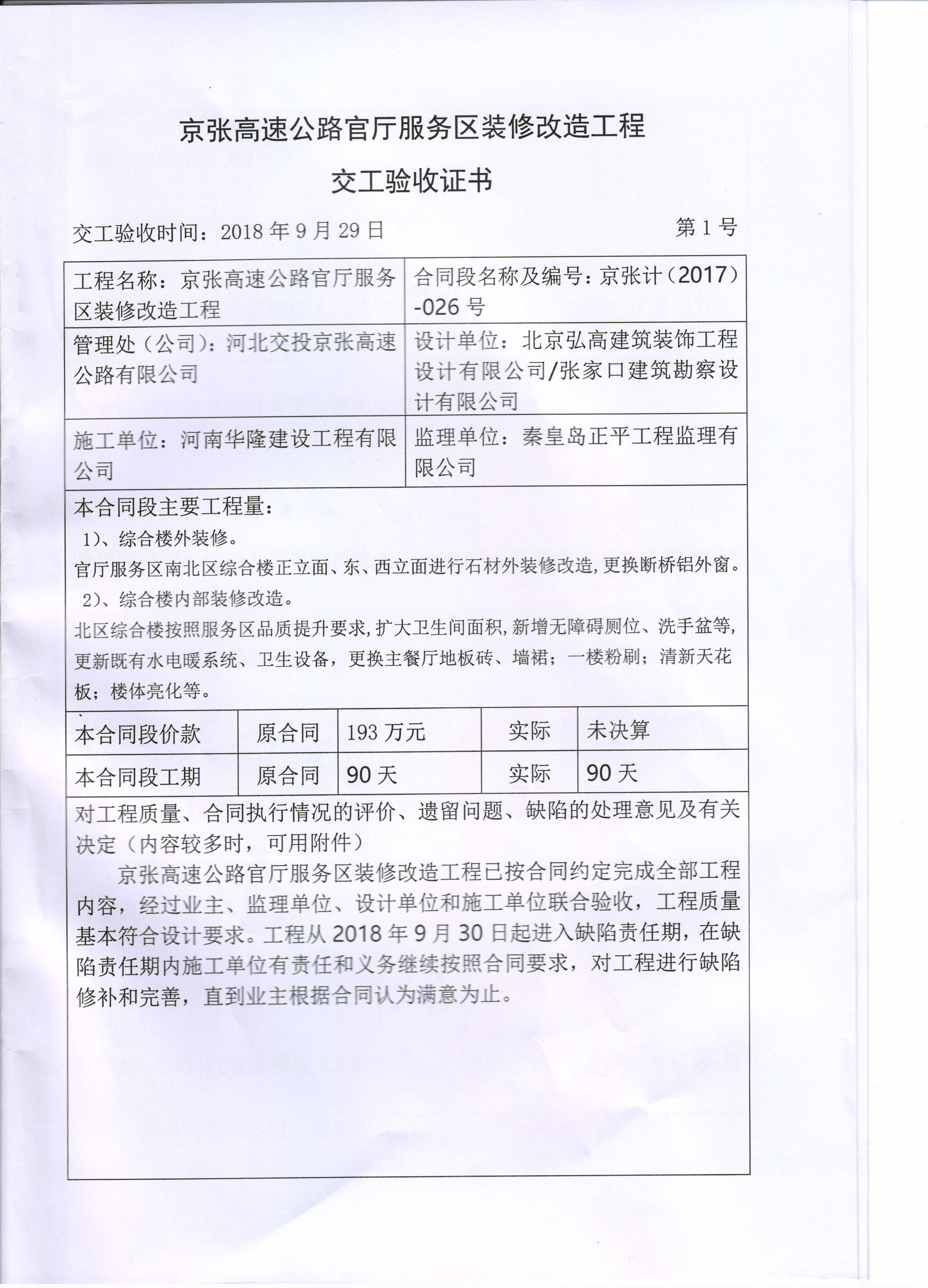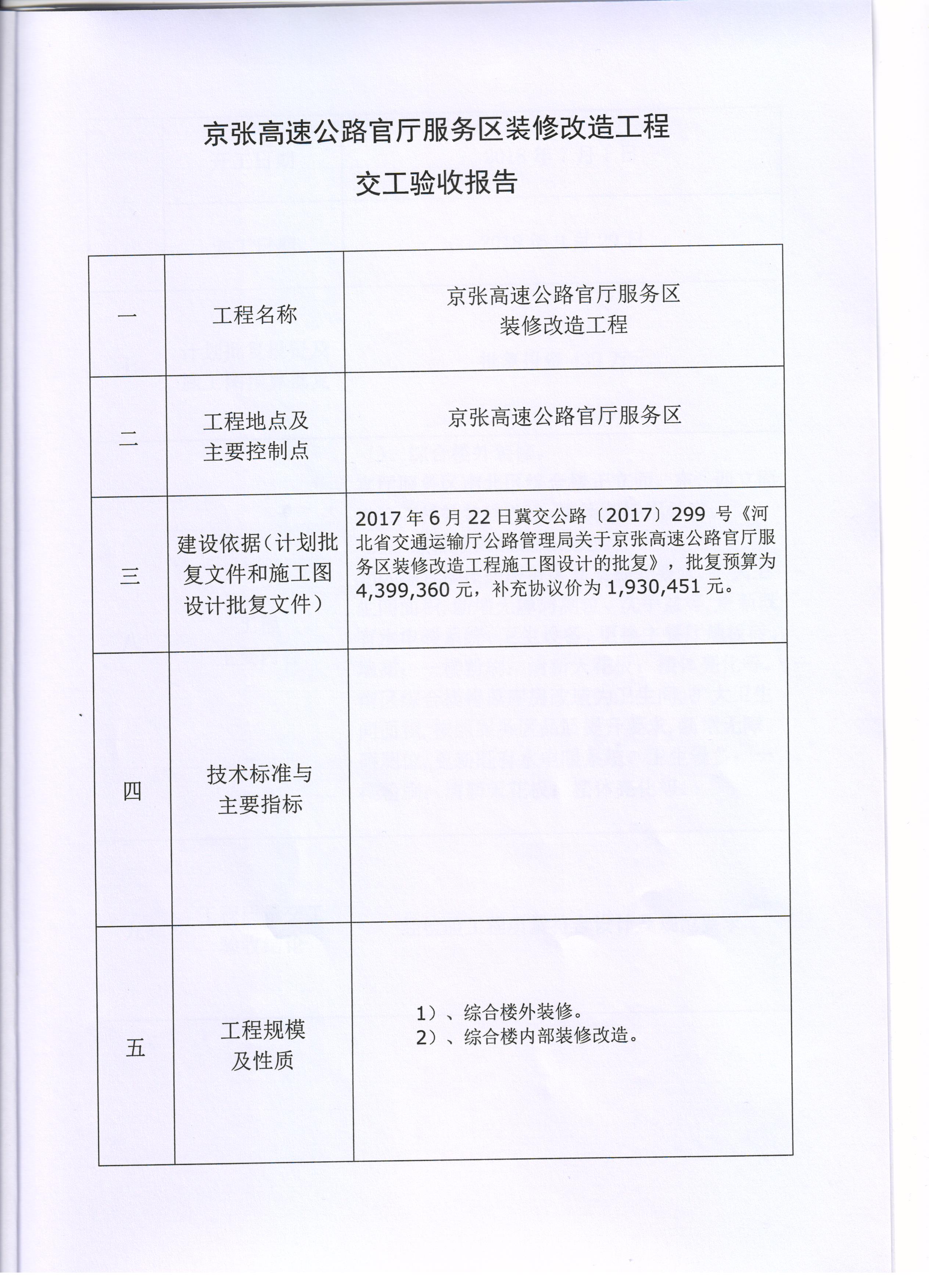 京張高速公路官廳服務(wù)區(qū)裝修改造工程交工驗收報告